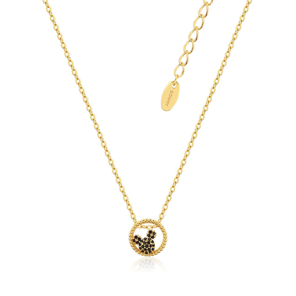 Disney Gold Plated Sterling Silver Mickey Black CZ Medallion Pendant On Chain