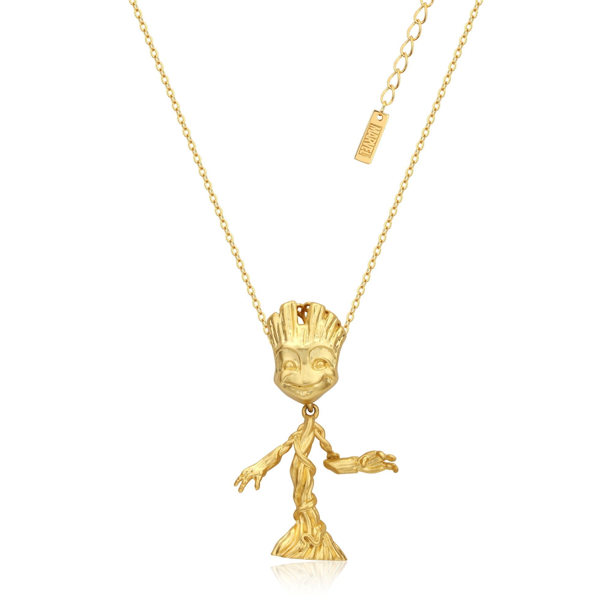 Disney Stainless Steel Gold Plated Guardians Of The Galaxy Groot Pendant On Chain
