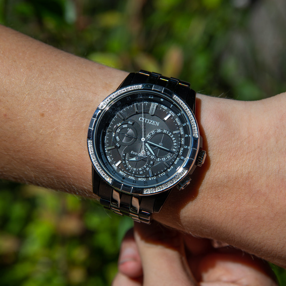 • Technology - Eco-Drive • Case Material - Stainless Steel • Case Size 44mm • Band - Stainless Steel Bracelet, Push Button Buckle • Glass - Mineral Crystal • Water Resistant 100 Metres (Swimming/Snorkeling)
