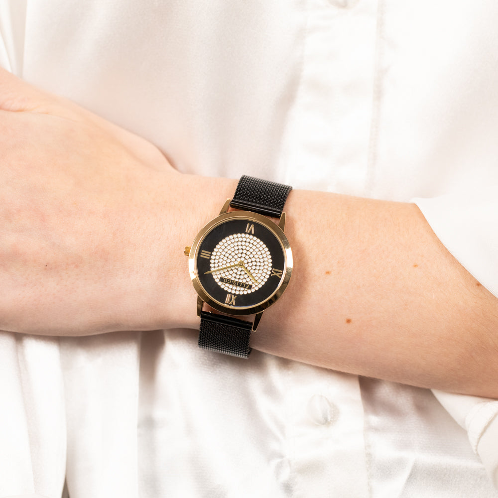 - Movement: Japan 2035 Movt - 36mm Case Size - Thickness: 7.5 mm - 30 Meters Water Resistant - Mineral Glass - Black Stainless-Steel Mesh Strap