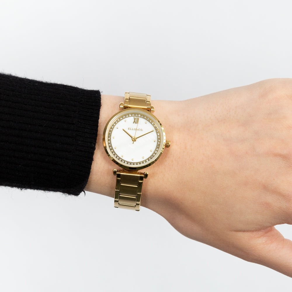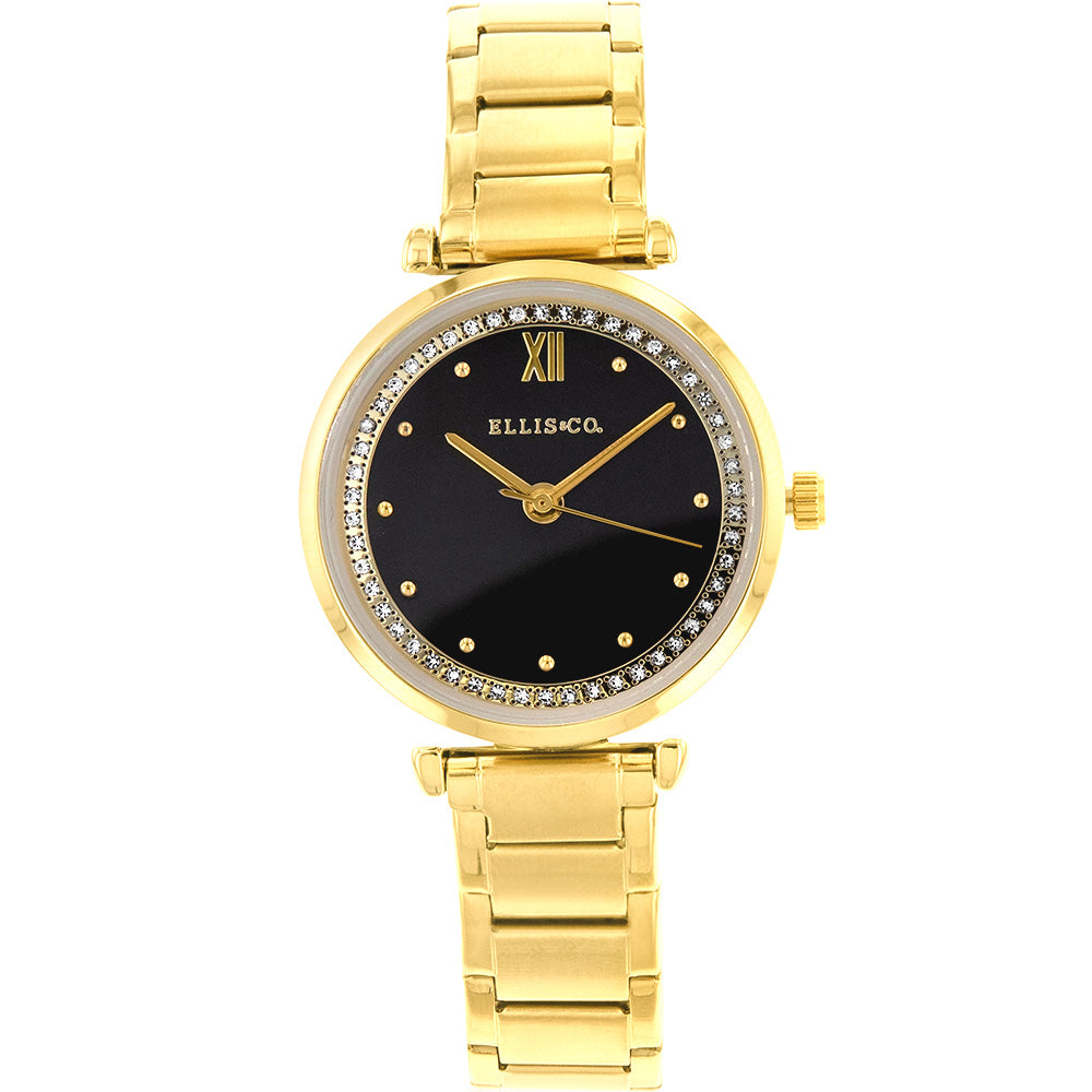 An everyday staple, this Ellis & Co Stella Stainless Steel Womens Watch features an iconic combination of yellow gold and black. The bezel is embellished with glittering stones that sparkle in the light and add a touch of glamour to the piece. Affordable, yet stylish and simple, this timepiece is great for any occasion. It will quickly become an everyday companion that you reach for day in and day out. Spoil yourself or someone special with a piece that will bring you confidence each time you wear it!