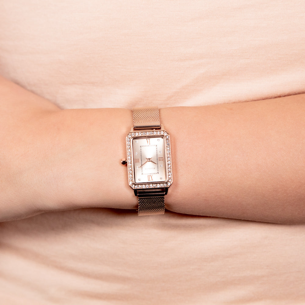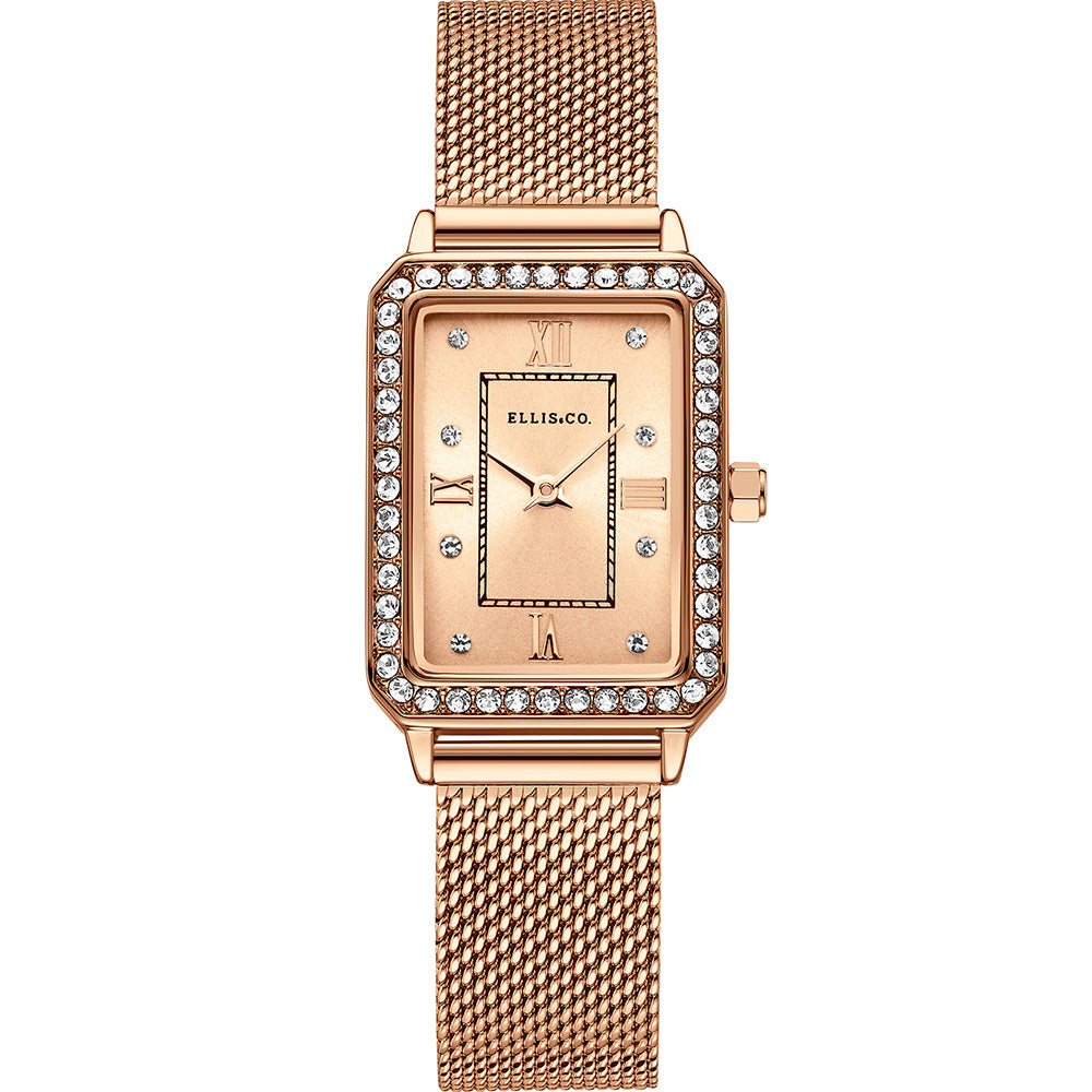 Ellis & Co Women's Watch -23 x 37mm Case Diameter -Mineral Glass -Japanese Movement -Rose Gold Tone Mesh Band