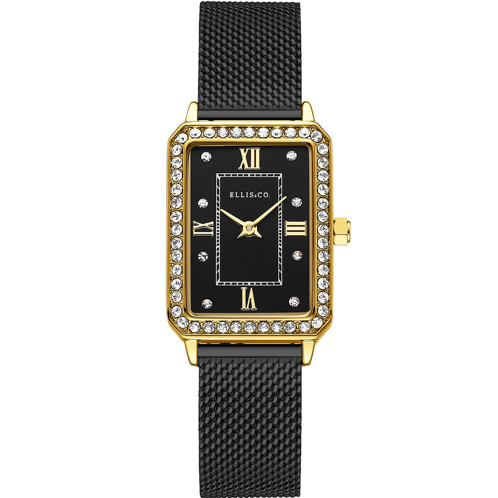 - 23 x 37mm Case Size - Thickness: 7.5 mm - 30 Meters Water Resistant - Mineral Glass - Black Stainless-Steel Mesh Strap