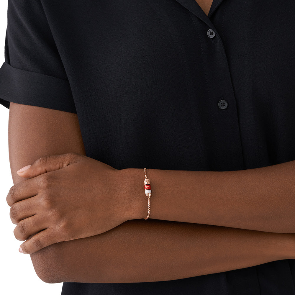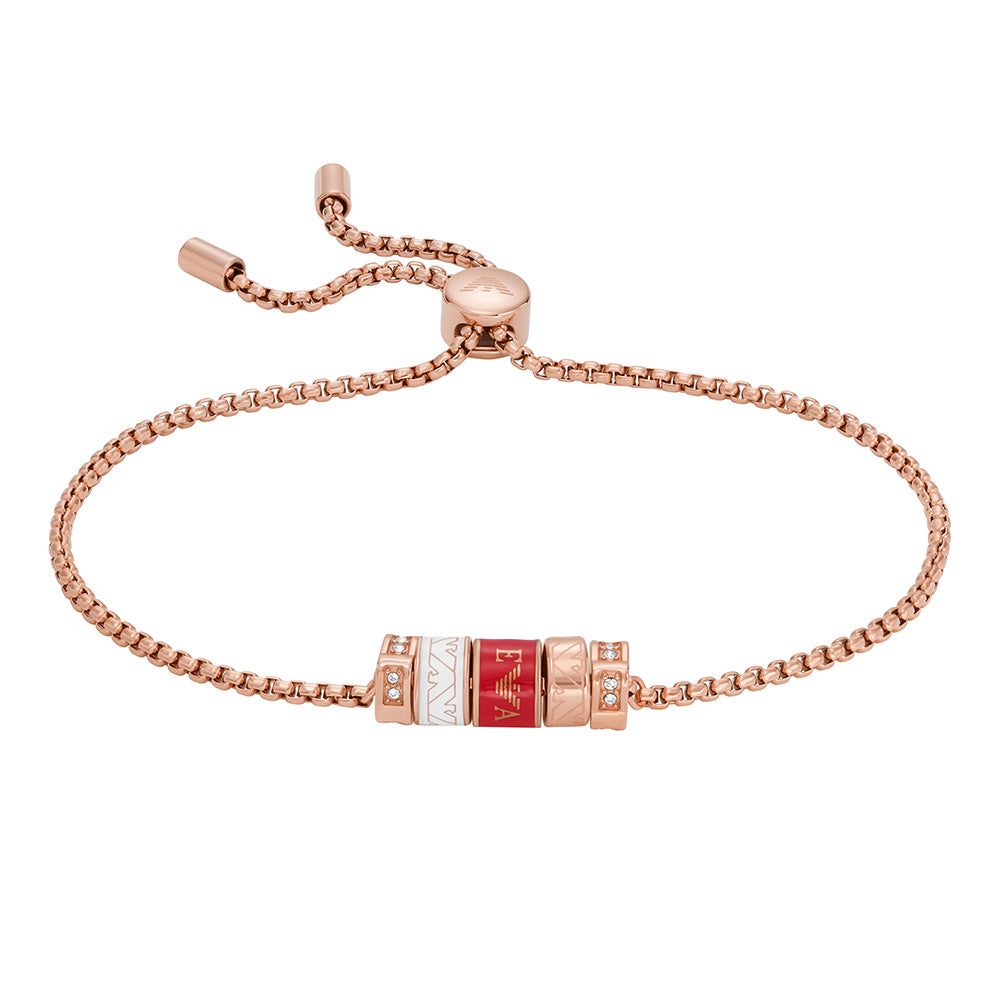 Emporio Armani Rose Gold Plated Stainless Steel Red Lacquer Components Bracelet