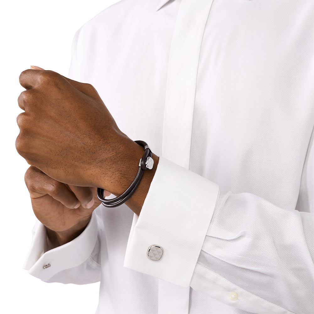 Emporio Armani Silver Plated Stainless Steel Logo Bracelet and Cufflink Set