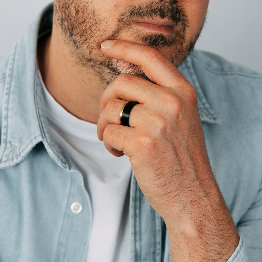 Forte Stainless Steel Gold Stripe Black Stainless Steel Ring