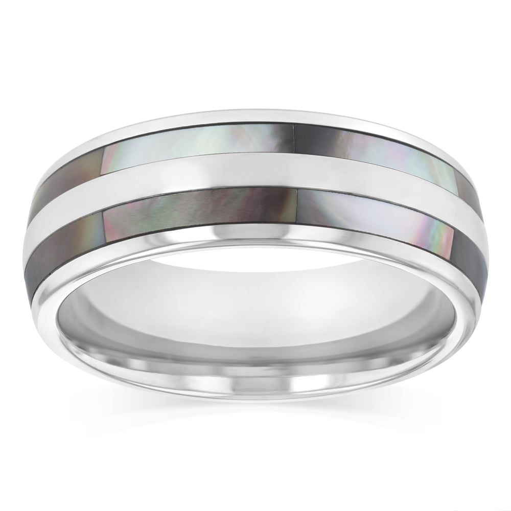 Forte Tungsten Two Lines Natural Black Seashell Inlay Polished Ring