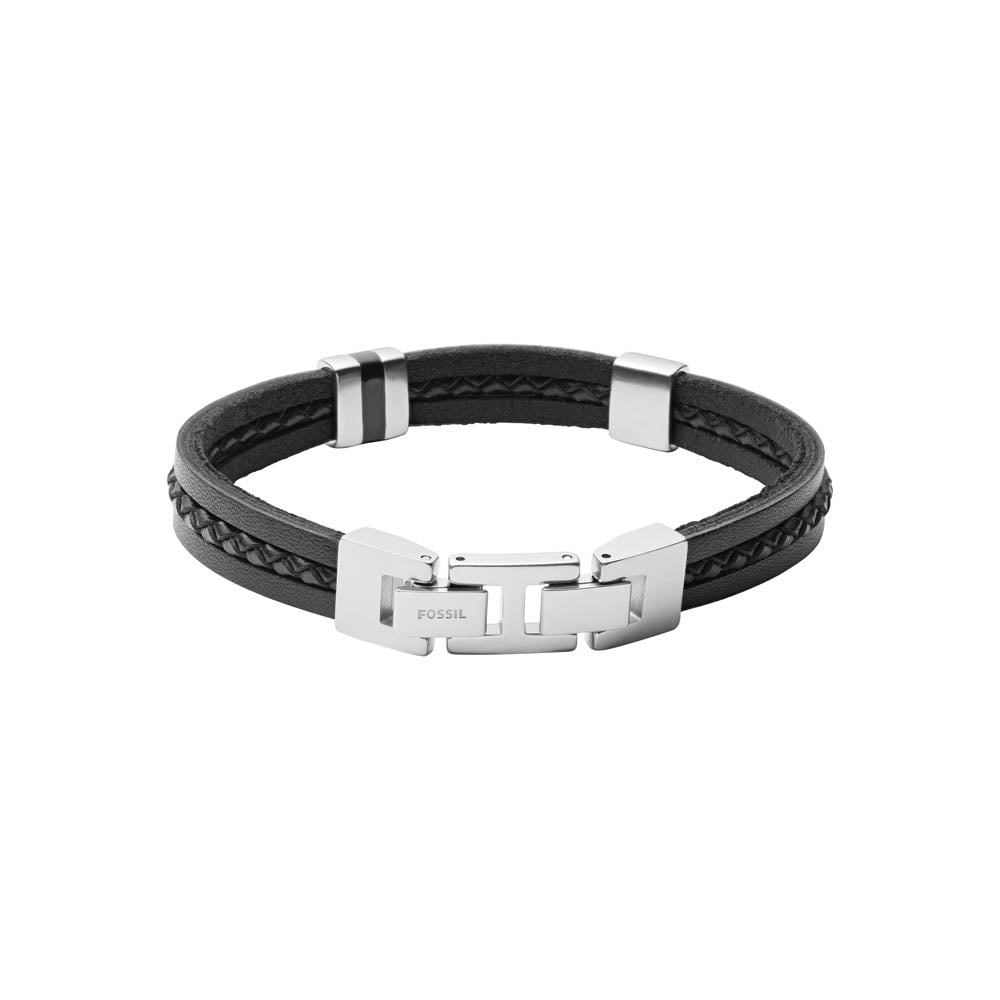 Fossil Stainless Steel Jewelry Multistrand Black Leather Bracelet