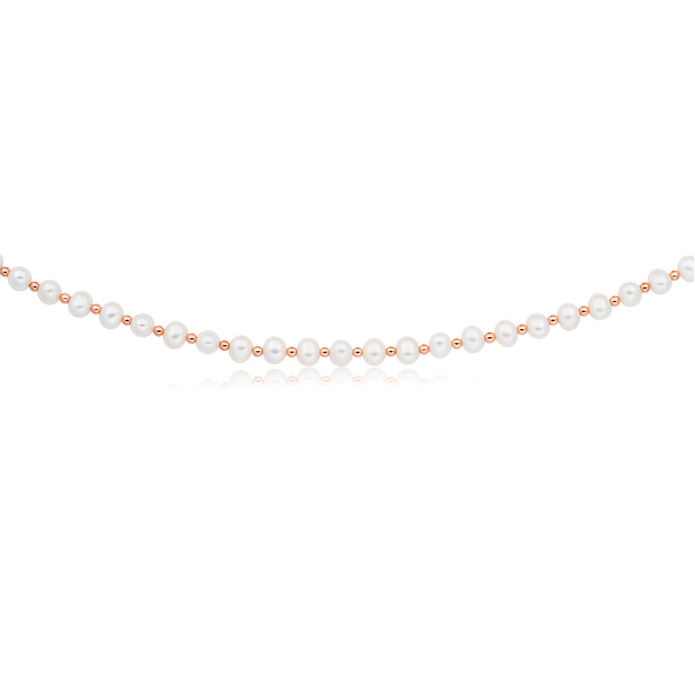 Freshwater Pearl and Rose Hematite Bead Strand with Rose Gold Plated Silver Clasp