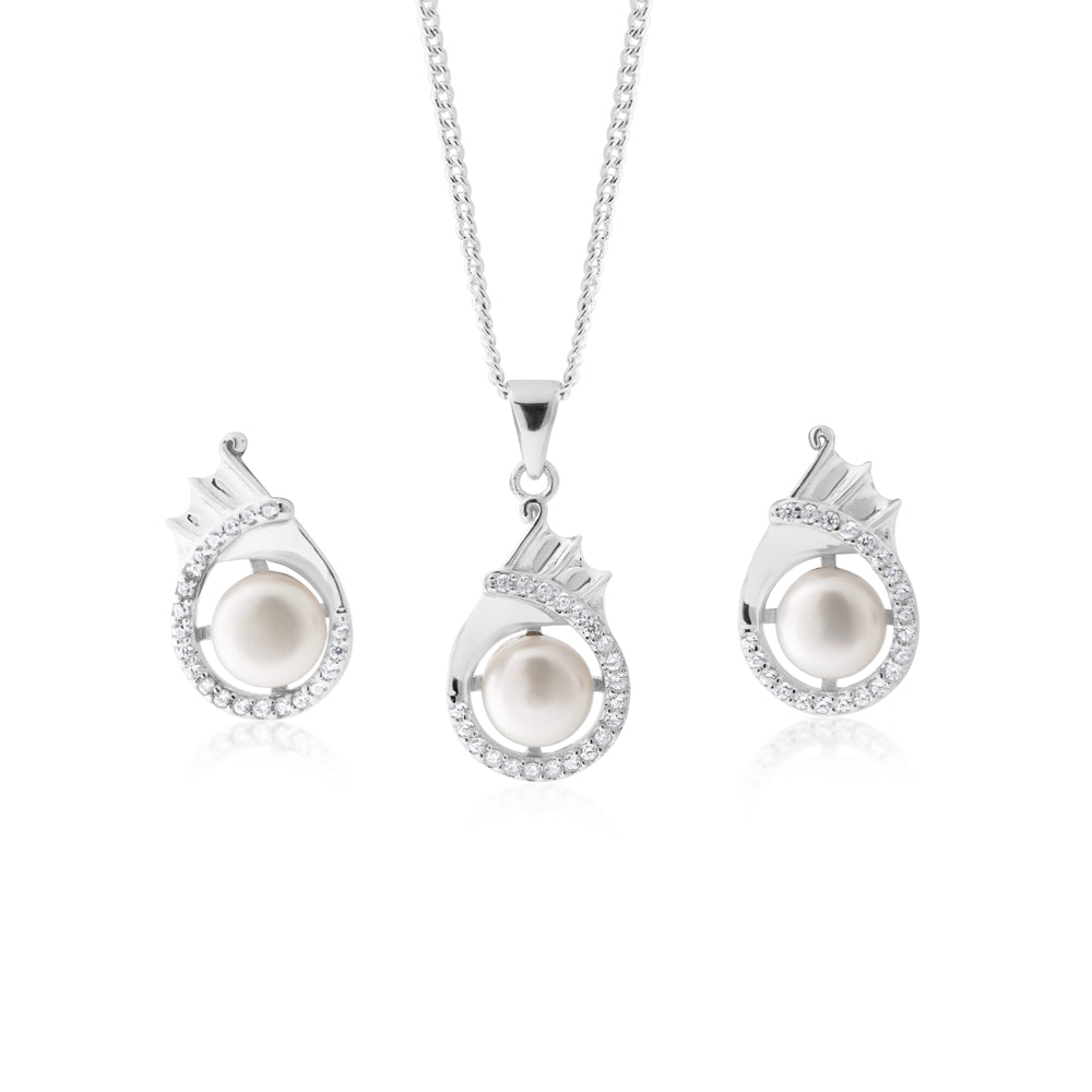 FRESHWATER PEARL EARRINGS & PENDANT SET SS WITH CHAIN
