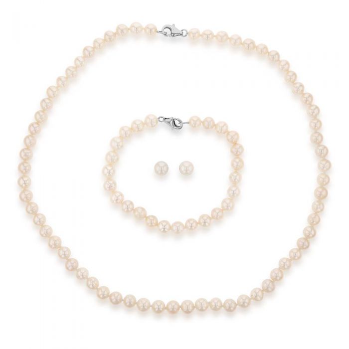 Freshwater White Pearl Boxed Set with Sterling Silver Clasp