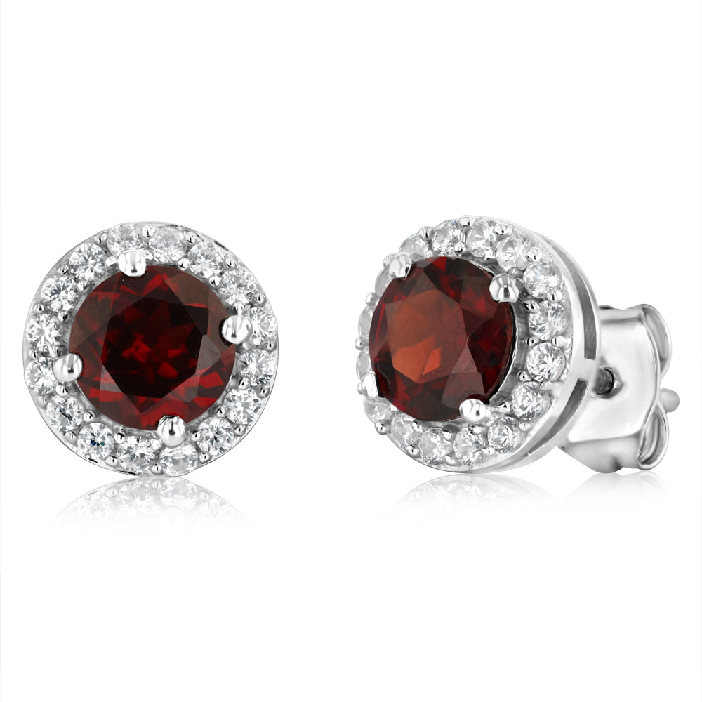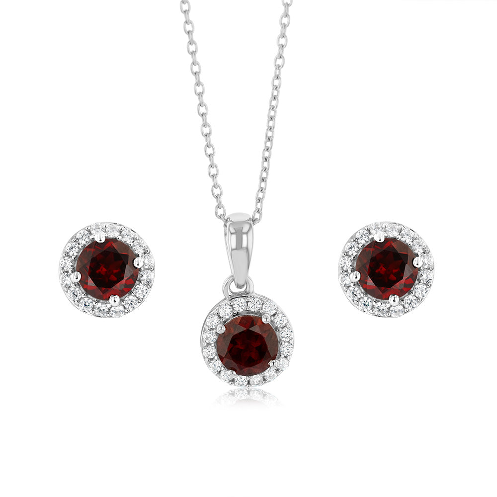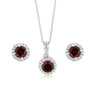 Garnet and White Zirconia Earring and Pendant Set on Chain in Sterling Silver