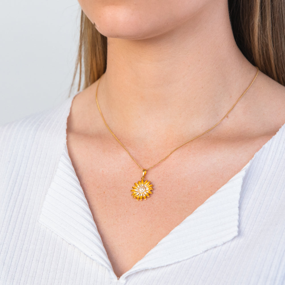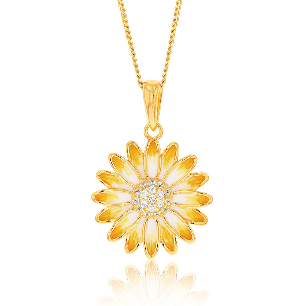 Gold Plated Sterling Silver And Enamel Sunflower Pendant