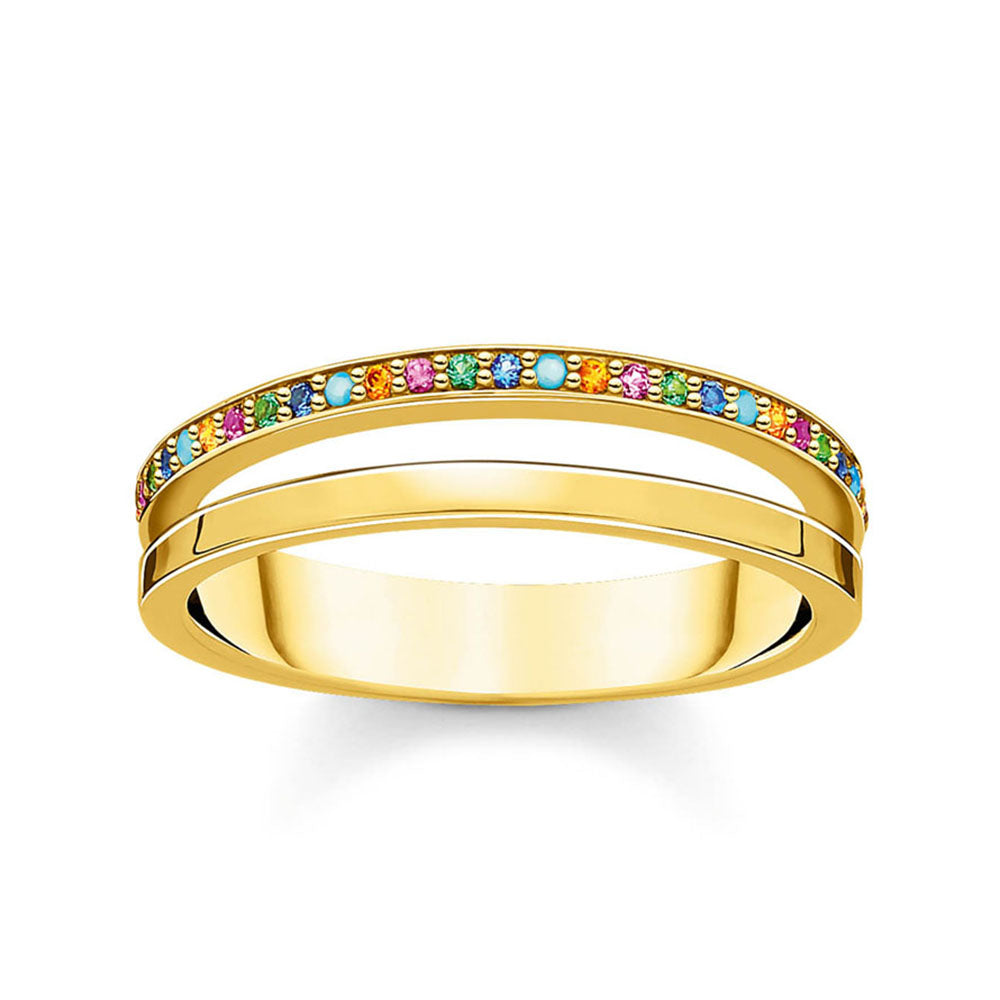 Gold Plated Sterling Silver Coloured Zirconia Double Band Ring