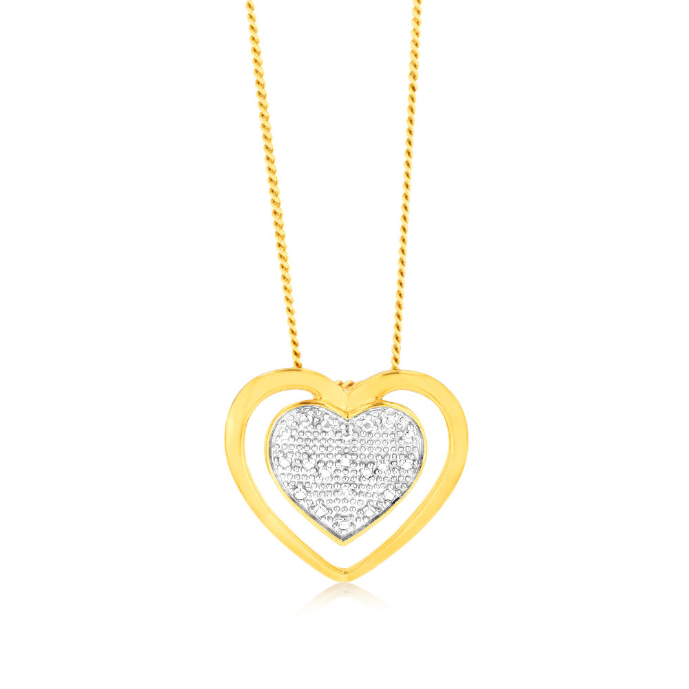Gold Plated Sterling Silver Double Heart 0.05Ct Diamond Pendant