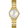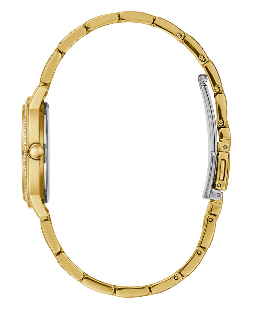 • Precise quartz timekeeping • Gold tone stainless steel case & bracelet • Sunray dial