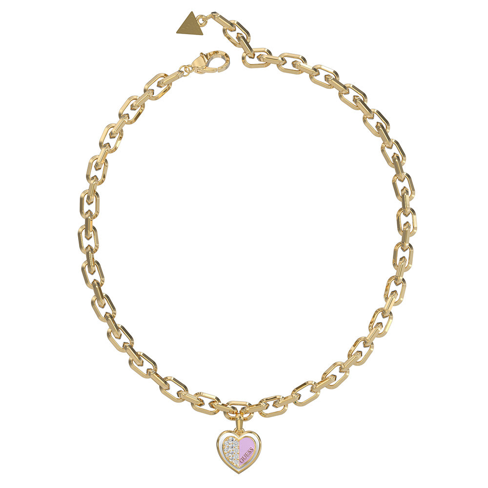Guess Gold Plated Stainles Steel 18" Lilac Double Heart Charm Chain