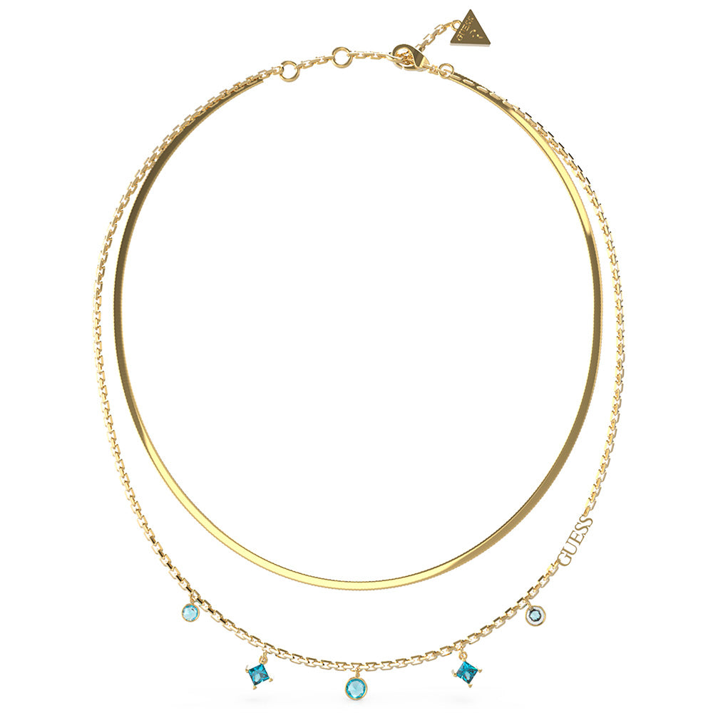 Guess Gold Plated Stainless Steel 15-17" Aqua Double Chain