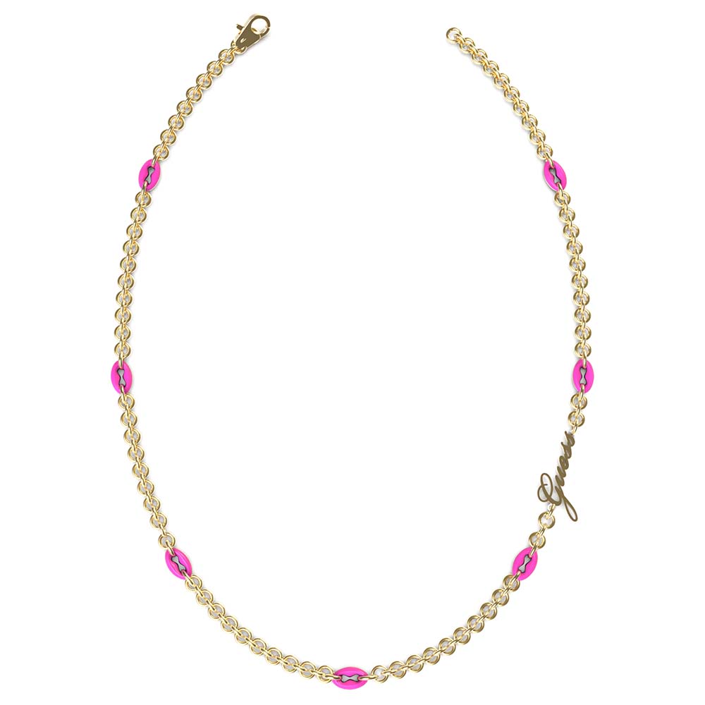 Guess Gold Plated Stainless Steel 17" Neon Pink Multi Charms Chain