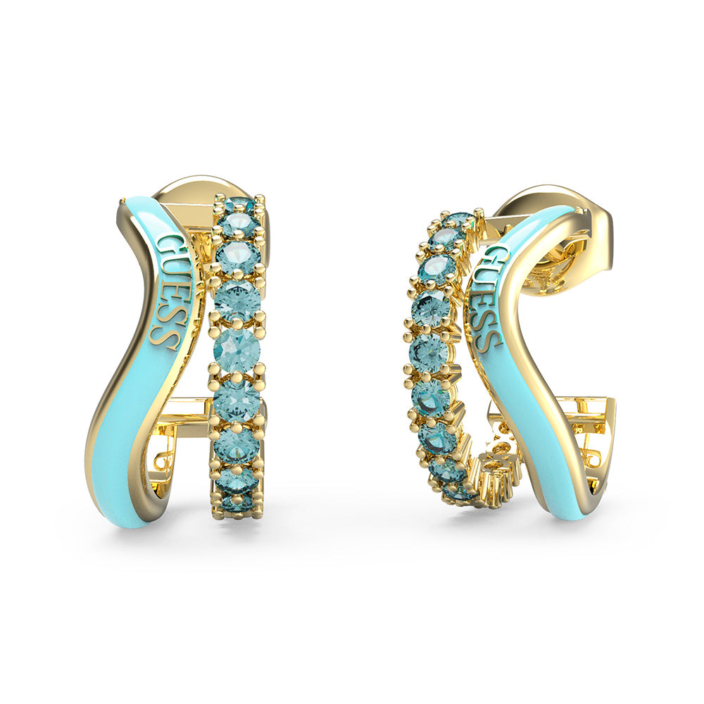 Guess Gold Plated Stainless Steel 17mm Aqua Double J Hoop Earrings