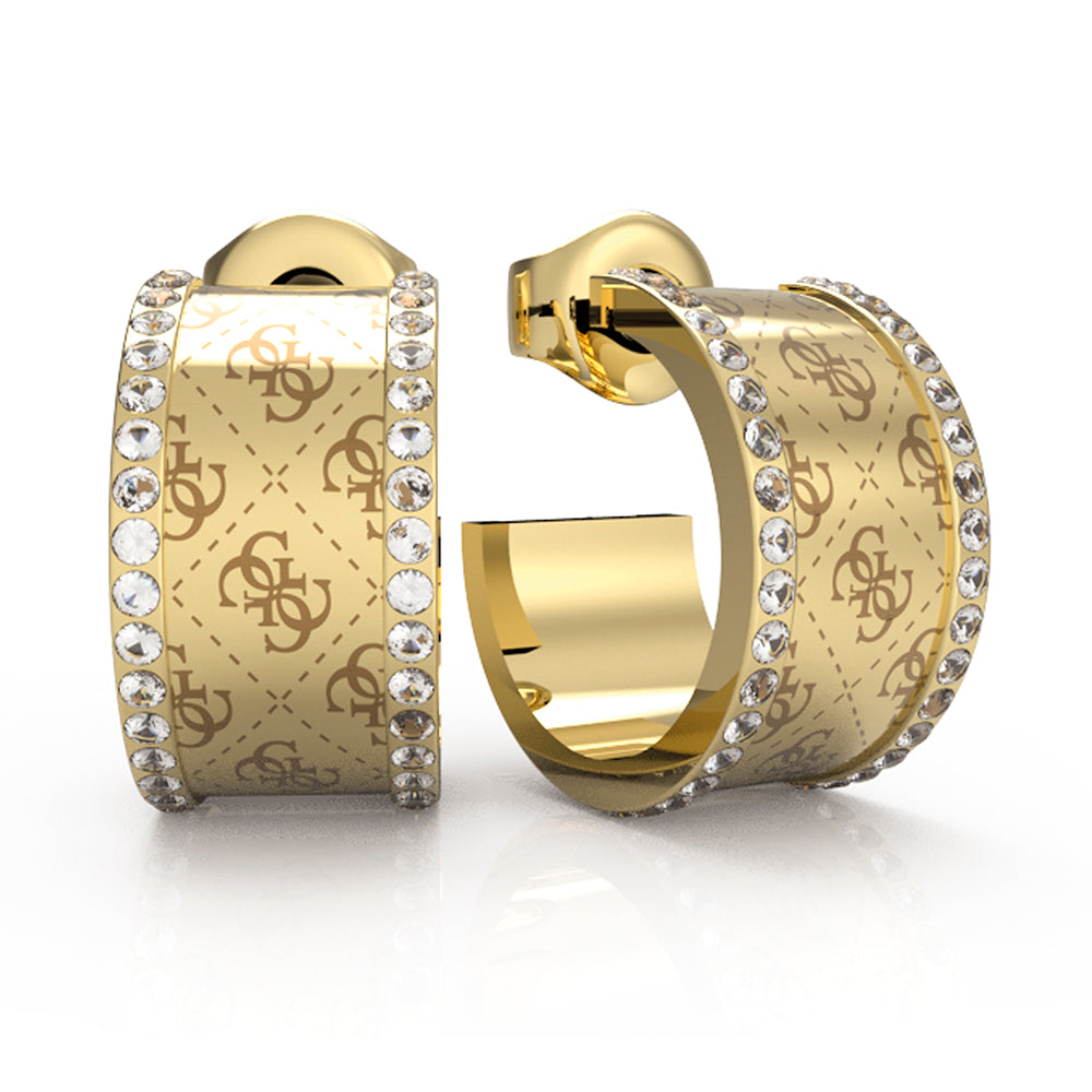 Guess Gold Plated Stainless Steel 18mm 4G Double side Crystal Band Earrings