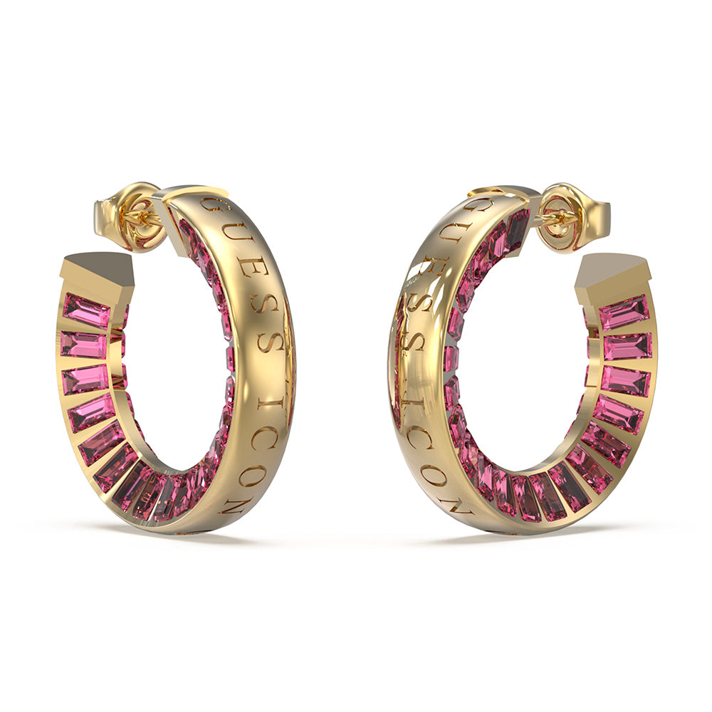 Guess Gold Plated Stainless Steel 25mm Rose Baguette Hoop Earrings