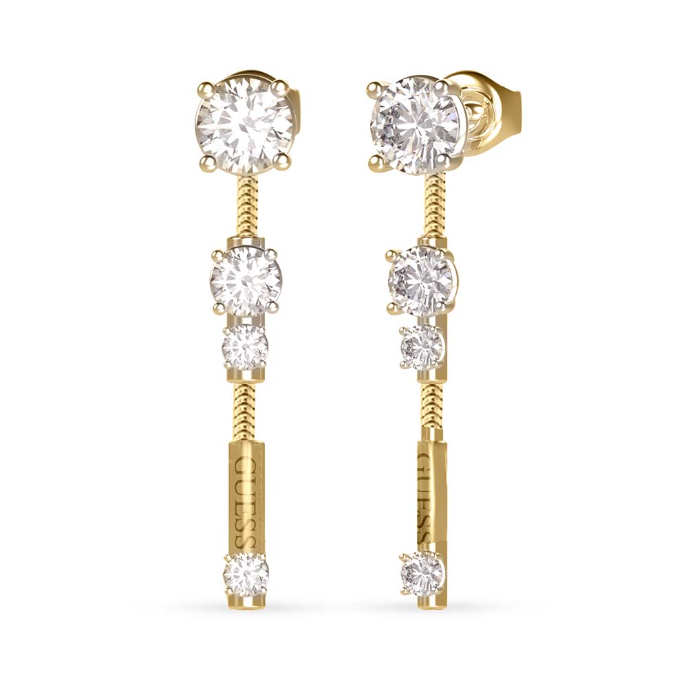 Guess Gold Plated Stainless Steel 38mm Pendant White CZ Drop Earrings