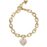 Guess Gold Plated Stainless Steel Lilac Double Heart Charm Bracelet