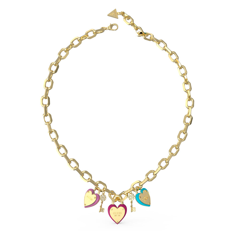 Guess Gold Plated Stainless Steel Multi Heart & Key 16-18" Chain
