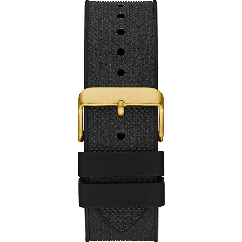 Introducing the Guess GW0264G3 Navigator Multi-Function Watch, a bold statement of contemporary style and functionality. This timepiece features a robust gold-tone stainless steel case complemented by a sleek black dial adorned with striking gold accents. The black bezel adds a sporty contrast, while the black silicone strap ensures comfort and durability. With an impressive 50mm case size, it commands attention on the wrist while maintaining a modern aesthetic. Designed for active lifestyles, it offers water resistance up to 50 meters, making it suitable for everyday wear and outdoor activities. The Guess Navigator watch blends rugged durability with sophisticated design, making it a versatile accessory for the modern adventurer.
