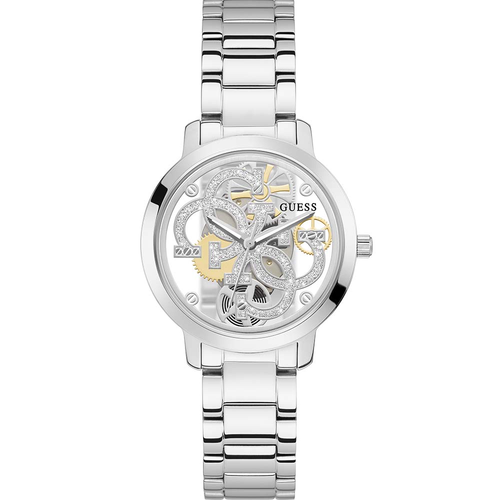 A truly unique piece, this stunning Guess GW0300L1 Quattro Clear Stainless Steel Womens Watch is unlike any other. Keep up with the trends and rock a fabulous ring that adorns the iconic guess logo. The band is crafted in durable stainless steel with a shiny silver lustre that is unmissable. A round watch dial completes the look and emphasises the intricate design. Embellished with glittering stones that add an element of glamour to your look, this ring is perfect for everyday wear as well as elevating your outfits.
