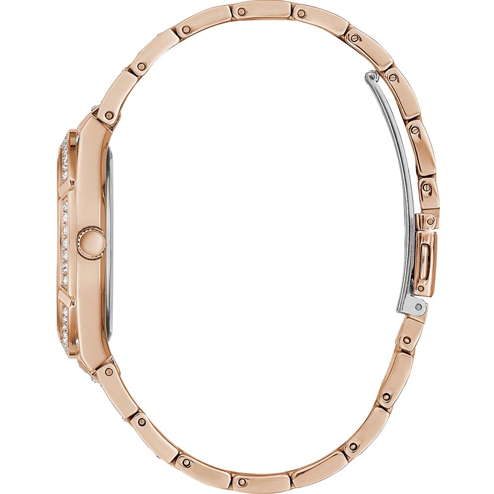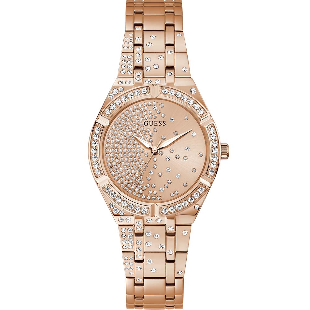 Introducing the Guess GW0312L3 Afterglow Watch, where radiance meets refinement in a stunning design. This timepiece features a captivating rose gold-tone stainless steel case and bracelet, exuding elegance and sophistication. The crystal-set bezel adds a touch of sparkle, enhancing the allure of the rose gold sunray dial adorned with crystal embellishments. With precise quartz movement and a versatile 36mm case size, it offers both style and reliability. Designed for everyday wear, it includes water resistance up to 30 meters, ensuring durability and functionality. The Guess Afterglow watch is a timeless accessory that epitomizes modern glamour, perfect for elevating any ensemble with its luminous appeal.