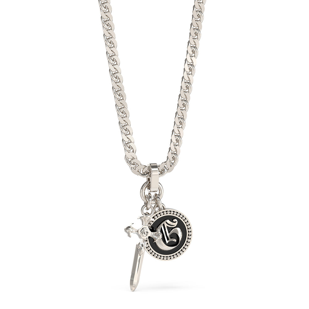 Guess Men's Jewellery Stainless Steel 26" G Coin & Dagger Pendant On Chain