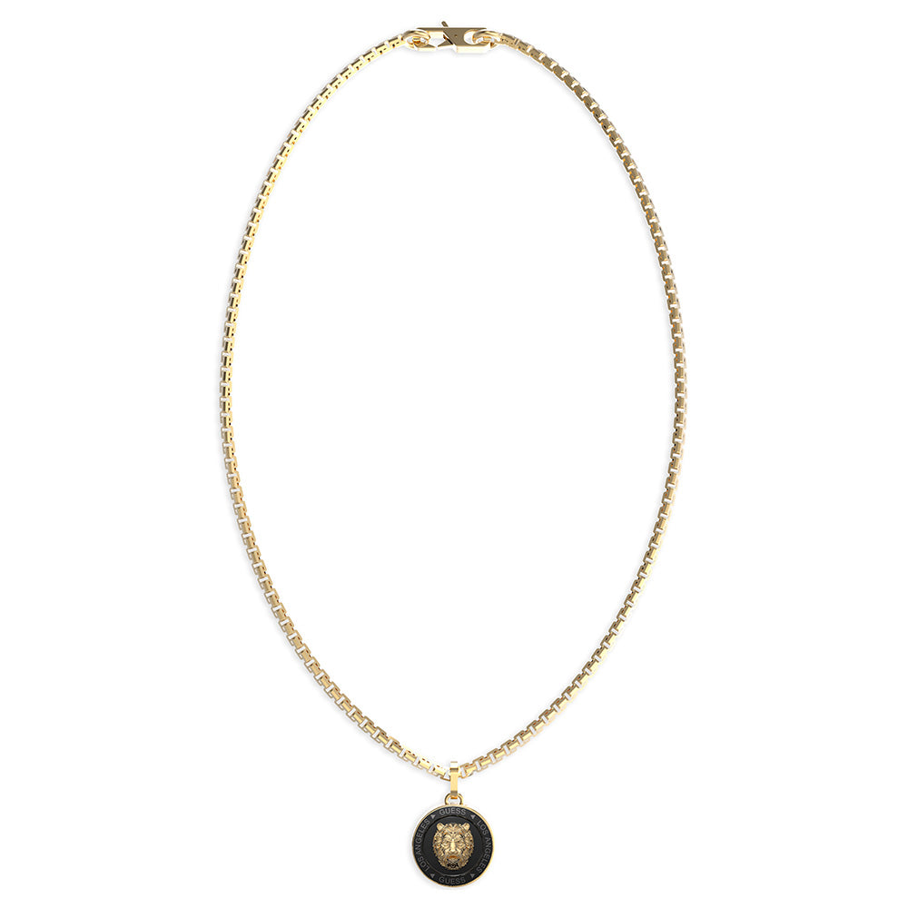 Guess Mens Jewellery Gold Plated 21mm Black And Gold Coin On Chain