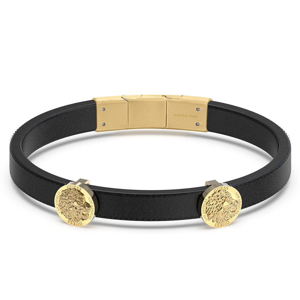 Guess Mens Jewellery Gold Plated Stainless Steel 10mm Double Side Coin Black Bracelet