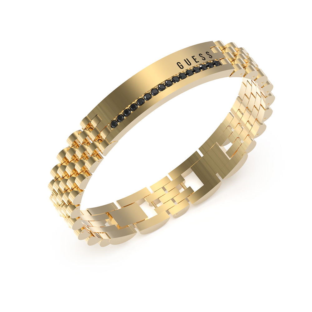 Guess Mens Jewellery Stainless Steel Gold Plated 10mm Tag Black Crystal Bracelet