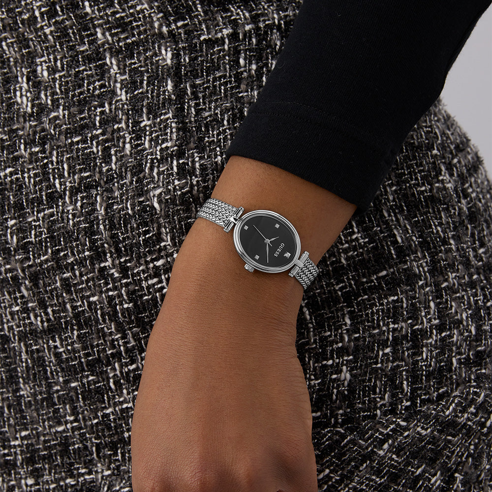 - 24mm Case Size - Stainless Steel Case and Mesh Band - 30 Meters Water Resistant