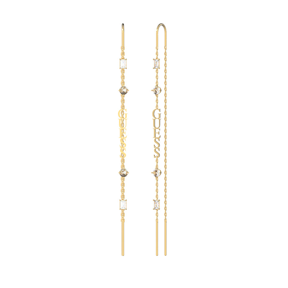 Guess Stainless Steel Gold Plated 80mm Logo Threader Drop Earrings
