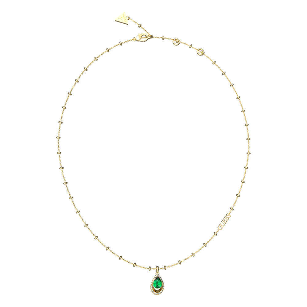 Guess Stainless Steel Gold Plated Emerald Mini Crystal Drop 16-18" Chain