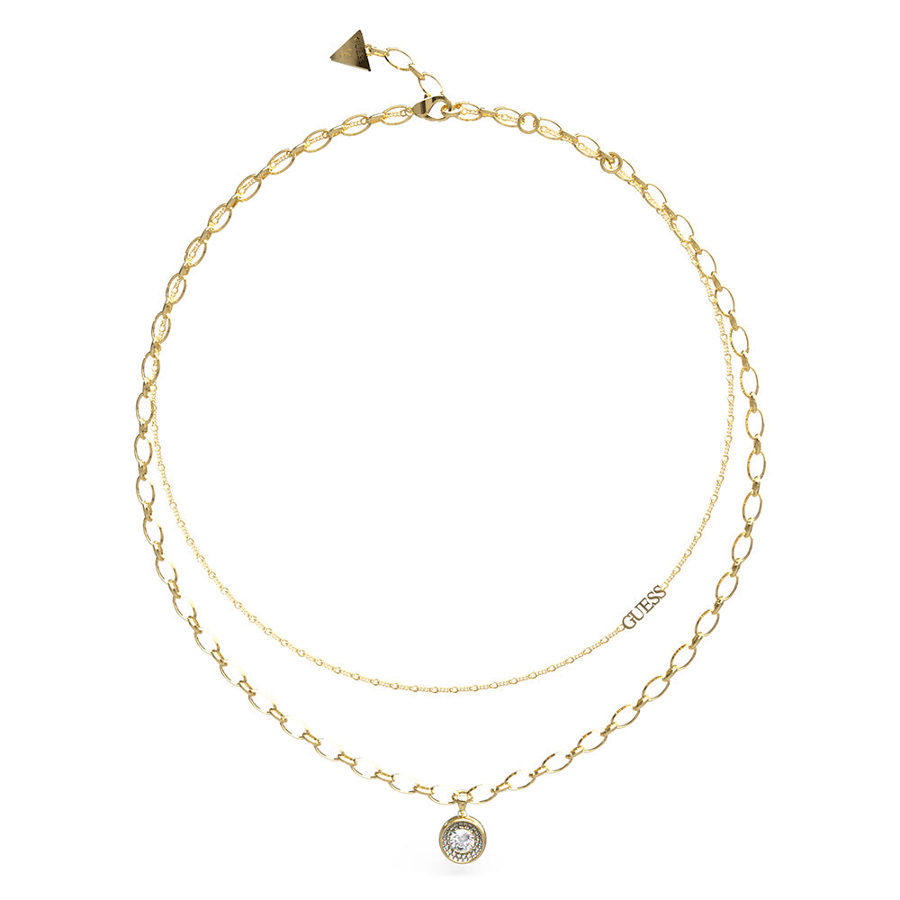Guess Stainless Steel Gold Plated Solitaire 15-17" Double Chain