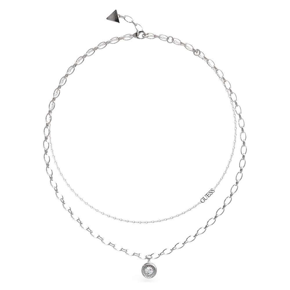 Guess Stainless Steel Rhodium Plated Solitaire 15-17" Double Chain