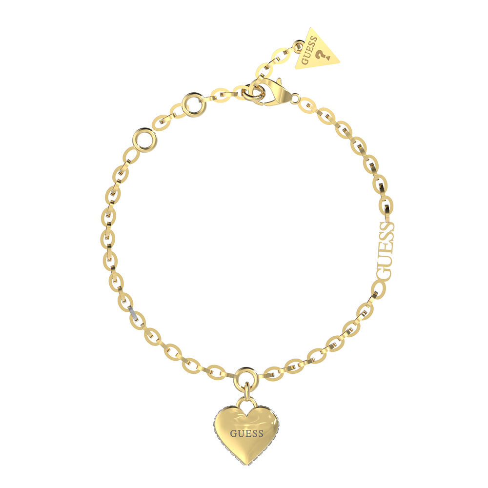 Guess Yellow Gold Plated 14mm Heart Fine Chain Bracelet