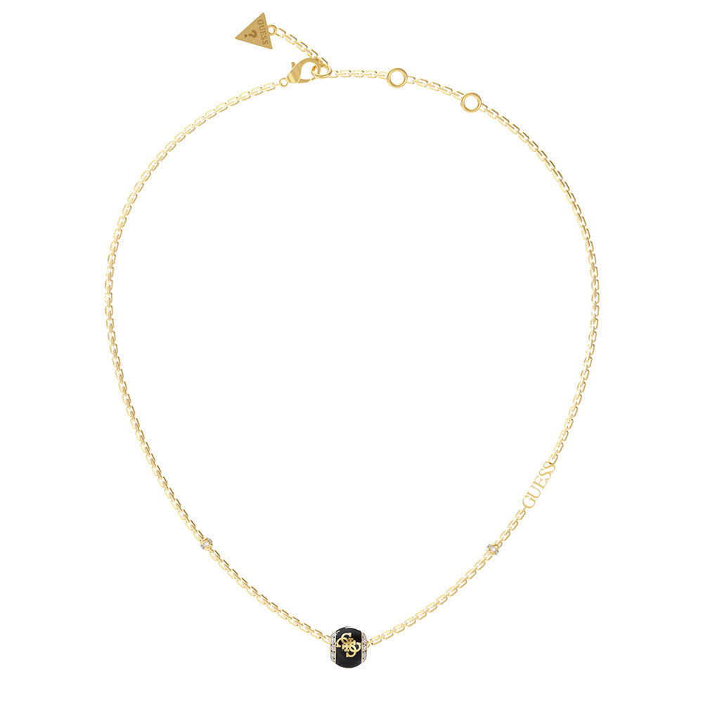 Guess Yellow Gold Plated 4G Black Bead Charm 16-18" Chain