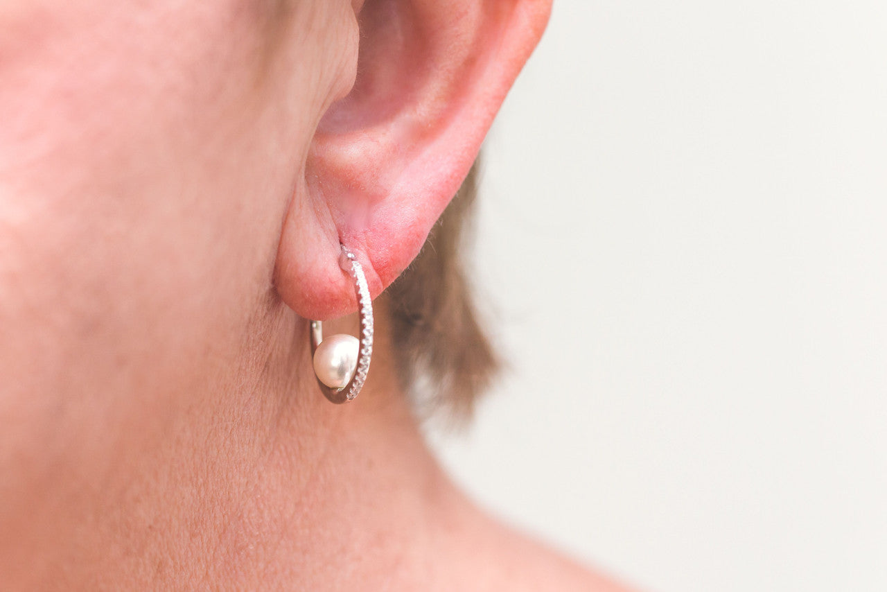 The Adored Earrings from the Heirloom collection are the on-trend desk to dinner Pearl Earrings. Featuring an 8mm floating shell-based Pearl these earrings ensure you can rock this seasons hottest Pearl trend day and night. Crafted in 925 Sterling Silver and Rhodium plated they measure approximately 22mm wide.