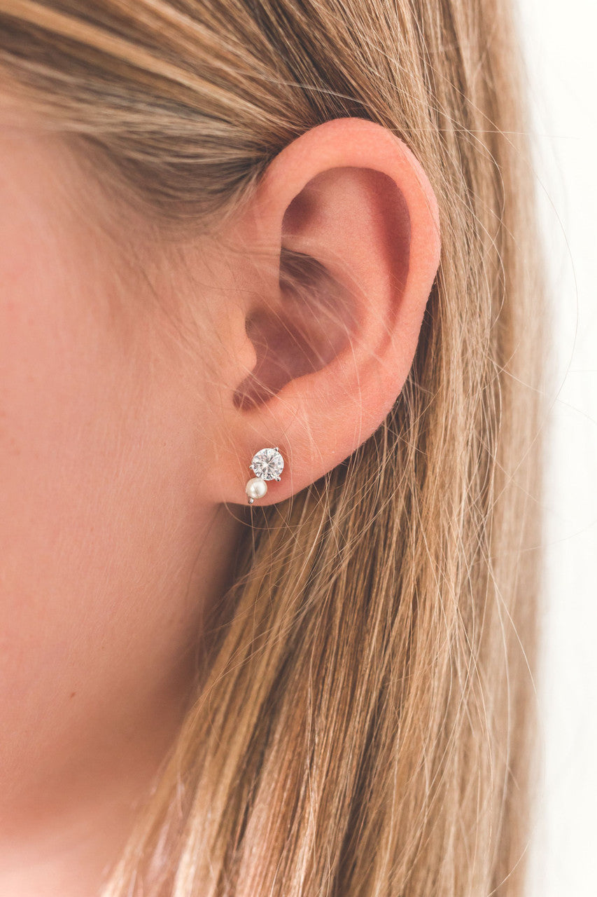 The Beloved earrings are so precious they belong in everyone's jewellery box. Combining a beautiful shell- based pearl and a 4.5mm sparkling Cubic Zirconia this earring measures approximately 9mm long. It is lovely on it's own or can be combined with pearl pieces in the Heirloom collection to complete the look. Crafted in 925 Sterling Silver and Rhodium plated.