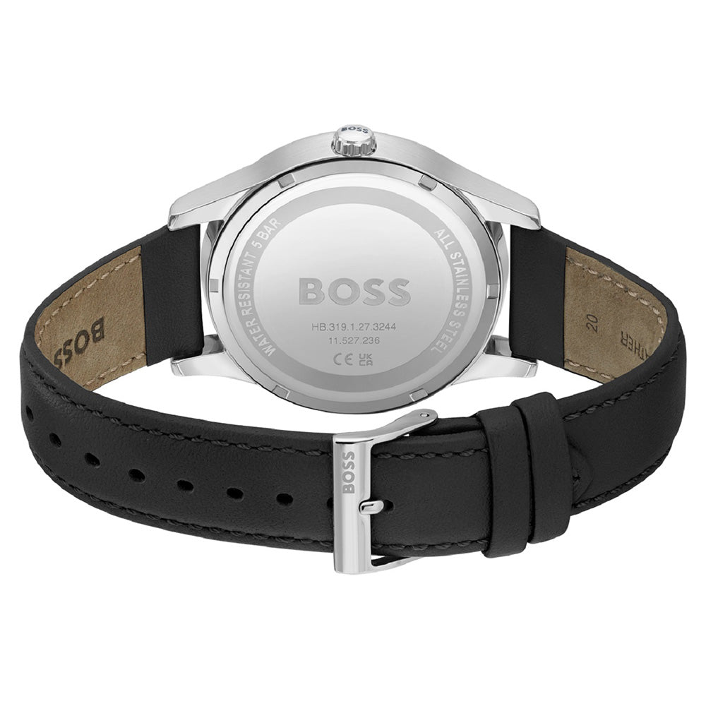 • Stainless Steel Case • Leather Strap • Analogue Display • Quartz Movement • 41mm Watch Diameter • 50m Water Resistance • Mineral Crystal Glass
