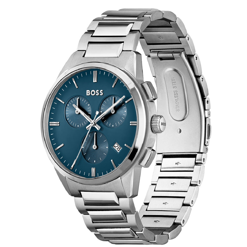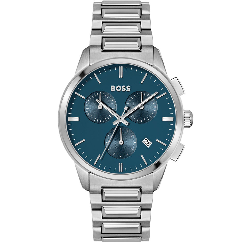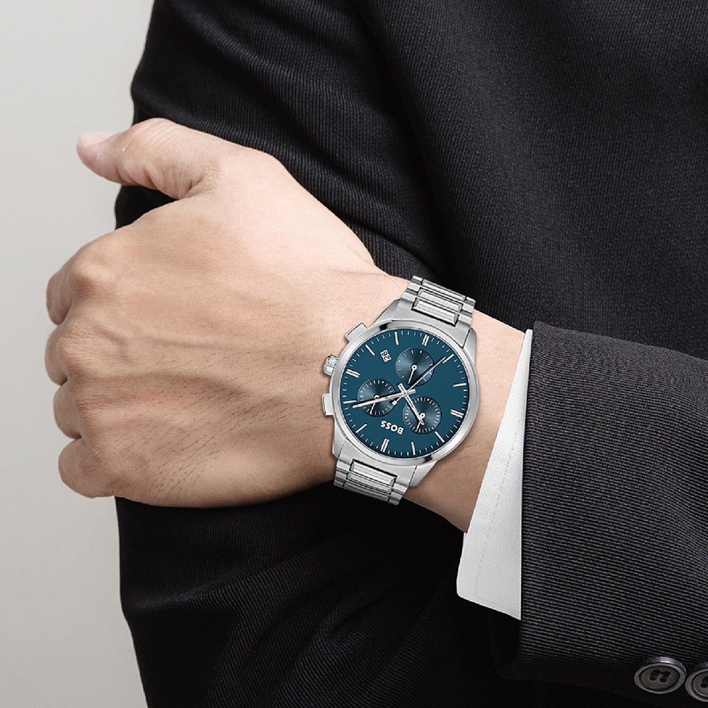 • Stainless Steel Case & Bracelet • Analogue Display • Quartz Movement • Chronograph • Mineral Crystal Glass • 43mm Watch Diameter • 50m Water Resistance