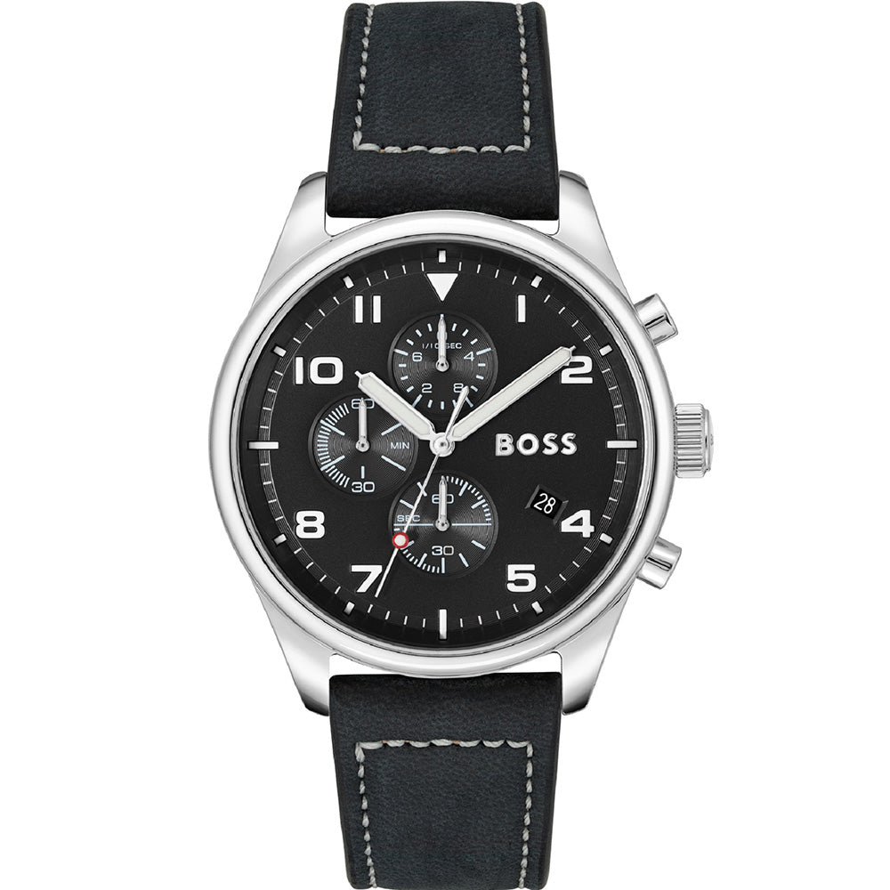 • Stainless Steel Case • Leather Strap • Analogue Display • Quartz Movement • 44mm Watch Diameter • 50m Water Resistance