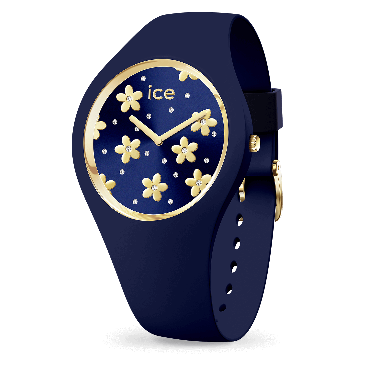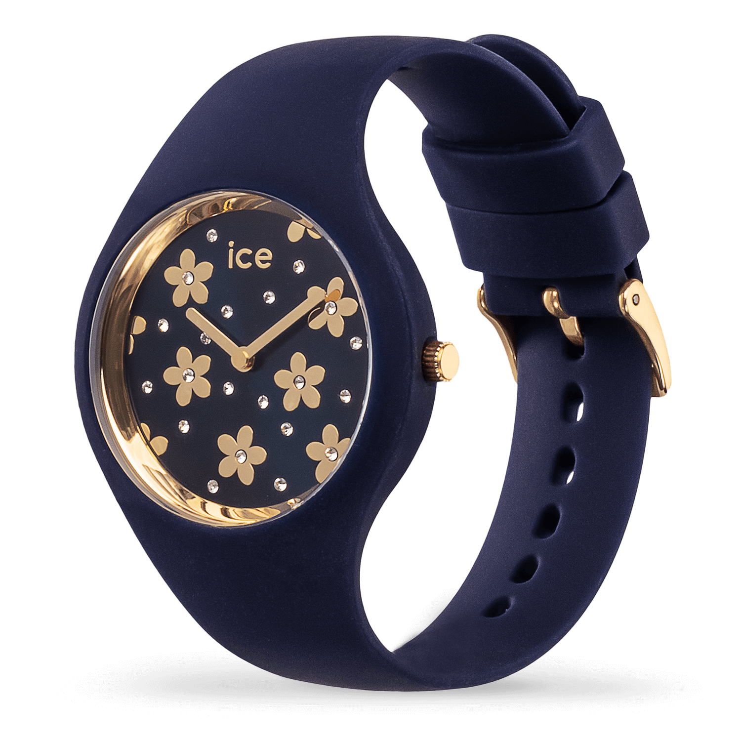 Fall for the elegant floral design of the Ice flower precious blue watch! Thanks to its deep blue silicone wrist strap with gold details, this blue watch is a real eye-catcher on the wrist. With its chic dial adorned with little gold flowers and crystals, it adds a feminine floral touch to all your everyday outfits!