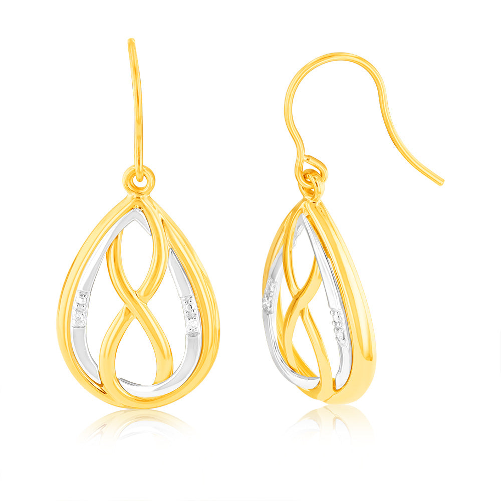 Infinity in Oval Shaped Drop Diamond Earrings in 9ct Yellow Gold